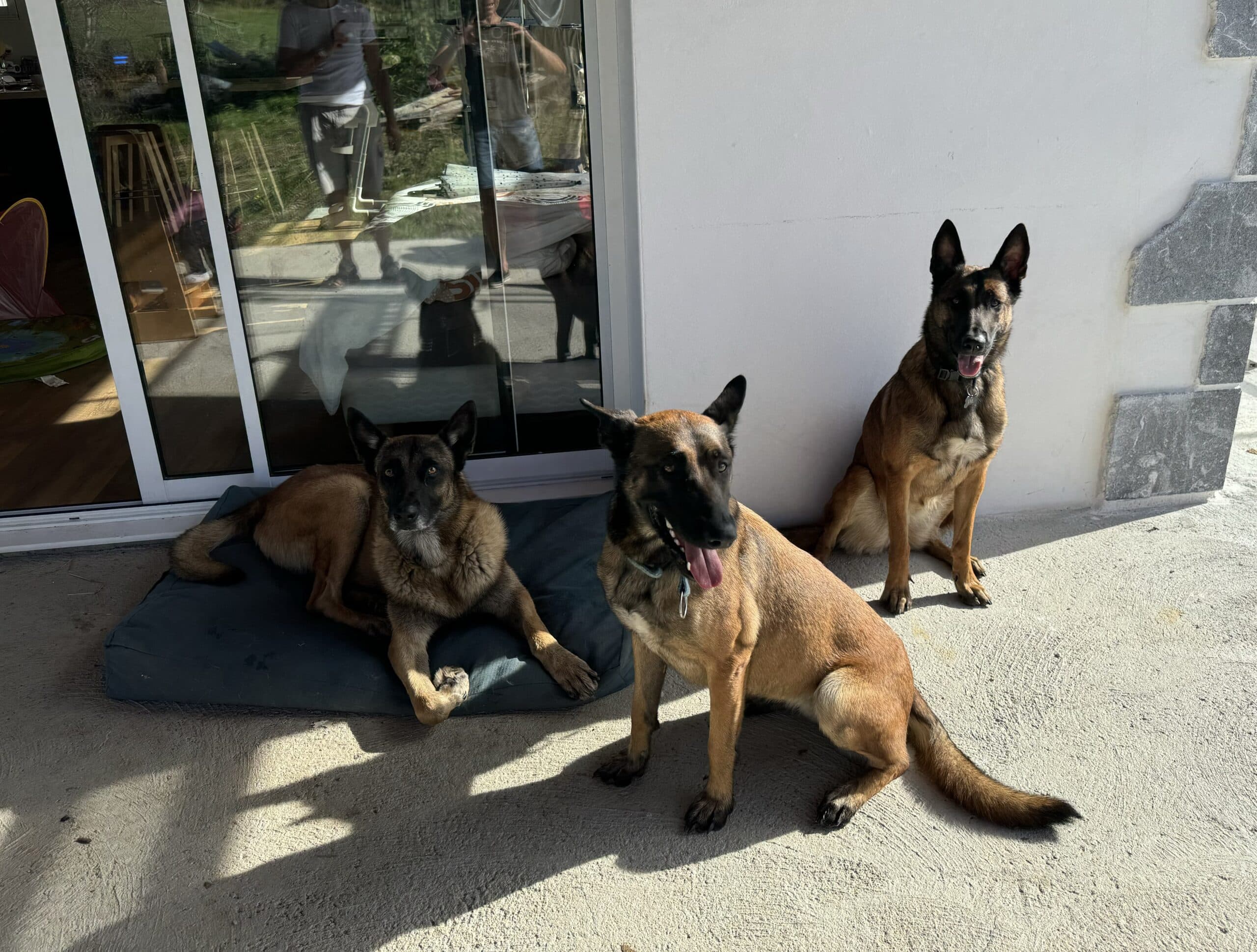 Chat et chien vivent dans la maison avec la famille, ils ont accés au jardin, piscine en été, et une pièce individuelle si besoin. Ils ont des balades quotidiennes, des occupations diverses.